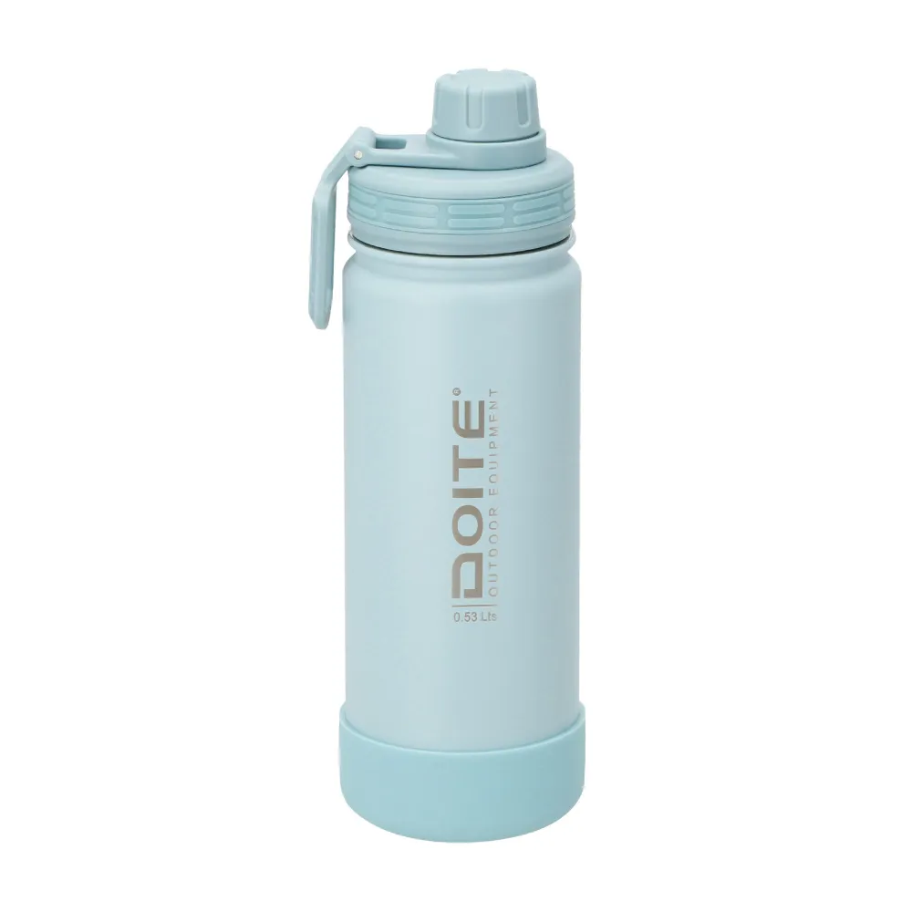 Botella termo ACTIVE de acero inoxidable doble pared. Mantiene bebidas frías 12 horas y calientes 6. Asa de transporte ideal para paseos, viajes o rutina diaria.