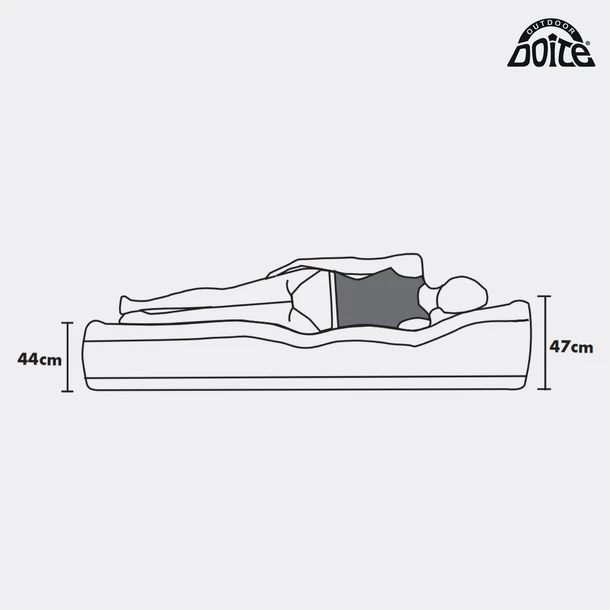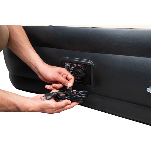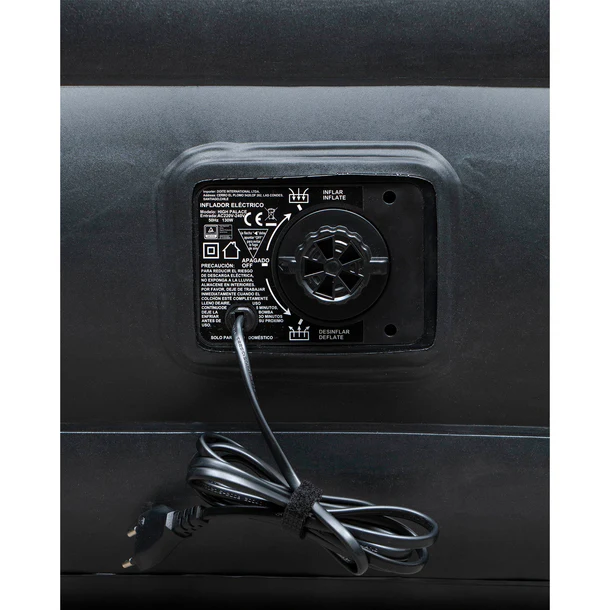 Gracias a su inflador eléctrico incorporado, la instalación es rápida y sencilla. La construcción de cilindros de aire al interior ofrece mayor resistencia y un soporte firme al peso del cuerpo. La superficie superior está cubierta con una suave tela de vinilo aterciopelado de calidad probada, que la hace confortable y antideslizante.