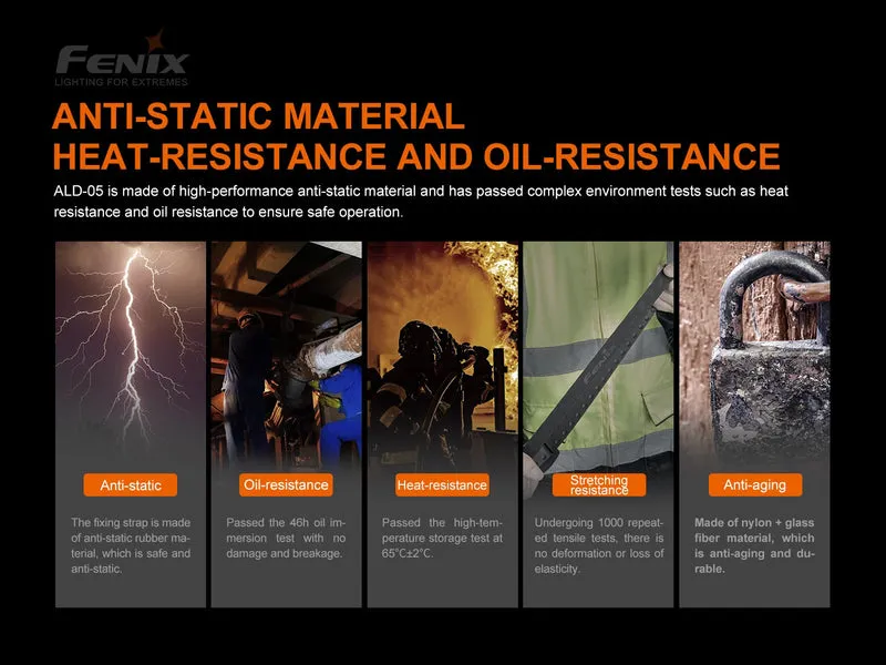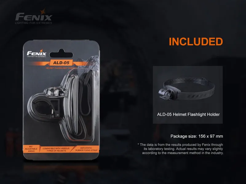 El Fenix ALD-05 es un soporte para linterna para casco que se puede utilizar para fijar linternas cilíndricas en cascos industriales, de bomberos, de rescate y otros. Equipado con una correa de fijación de goma antiestática ajustable, que se puede usar firmemente en varios tipos de cascos (la circunferencia de la cabeza no supera los 660 mm). El soporte de la linterna se puede girar 360 grados, lo que resulta conveniente para ajustar el ángulo de iluminación de la linterna hacia arriba y hacia abajo. Calibre de sujeción ajustable: adecuado para linternas con un diámetro exterior del cuerpo de 20-28 mm.