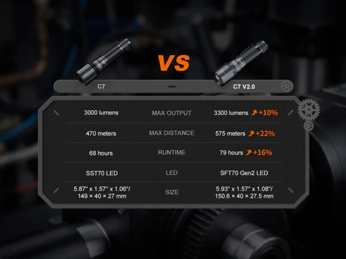 - Utiliza un led Luminus SFT70 Gen2 con una vida útil de 50.000 horas.