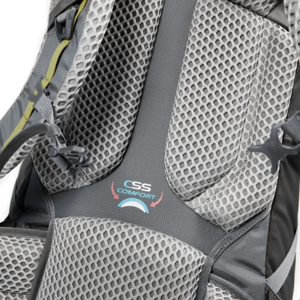 Cuenta con acolchado en las zonas de más presión, aportando una sensación de confort y ajuste. Cuenta con bolsillo multiuso en el cinturón lumbar, y correas fáciles de ajustar. Los tirantes en forma de S mejoran la sensación de ajuste.