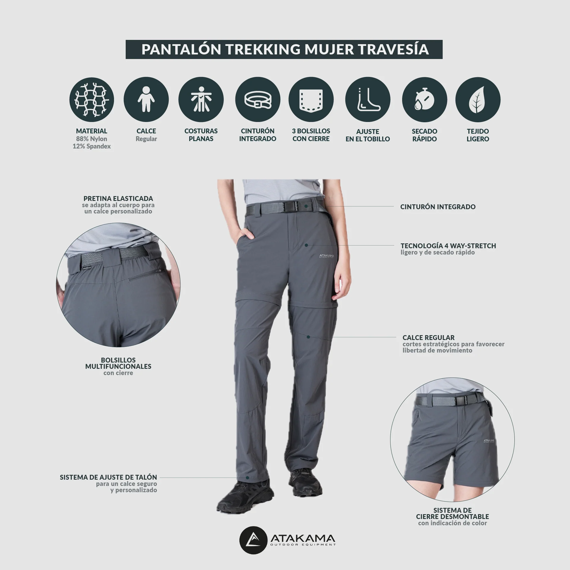 - Pantalón desmontable, ligero y resistente